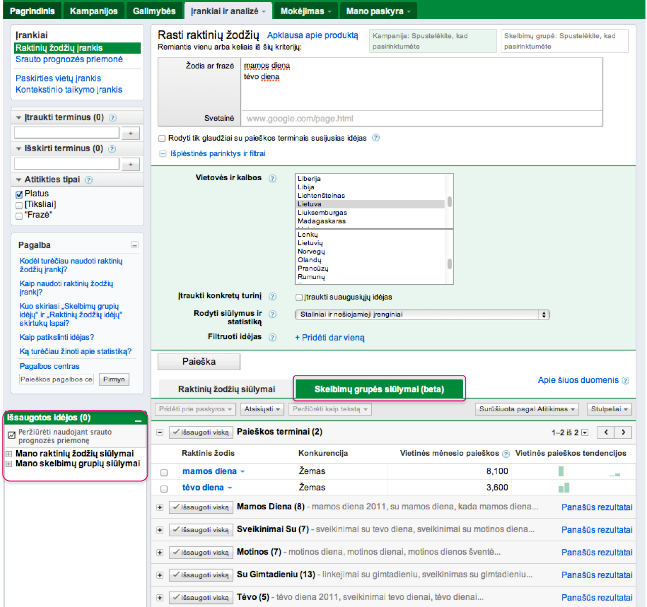 Labels: keyword tool , raktinių žodžių įrankis , srauto prognozės priemonė , traffic estimator